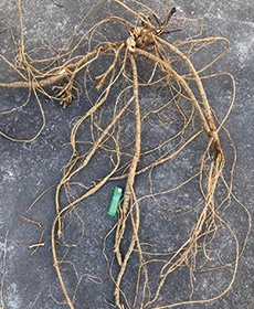 劣質(zhì)苗結(jié)薯特點 收獲期主根為木質(zhì)薯,其他分根薯細小,整棵重量少